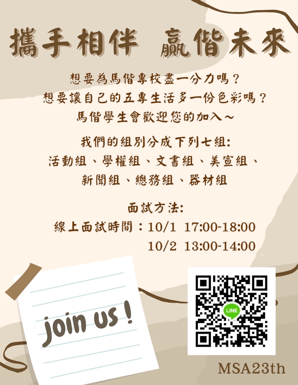 學生會至今已成立23屆,我們致力於爭取學生權益以及在校方和學生之間擔任溝通的橋樑,歡迎想挑戰、訓練自己能力以及想找尋自己專長的同學們加入我們的大家庭~